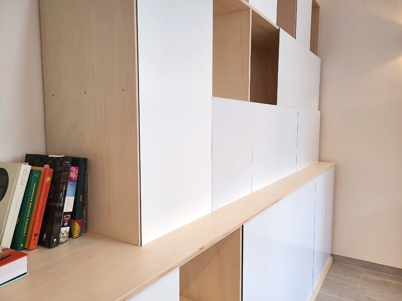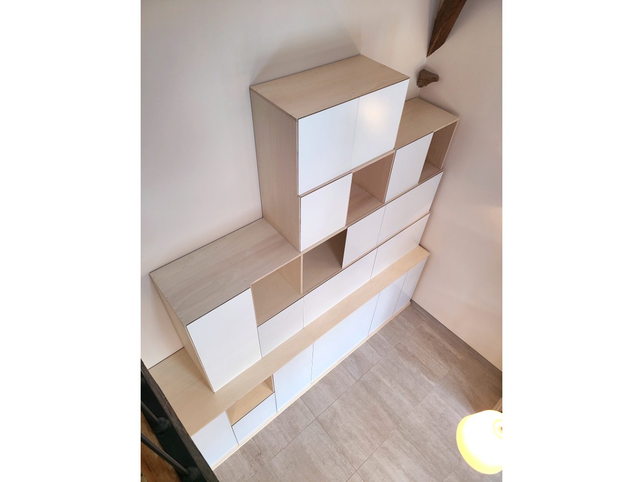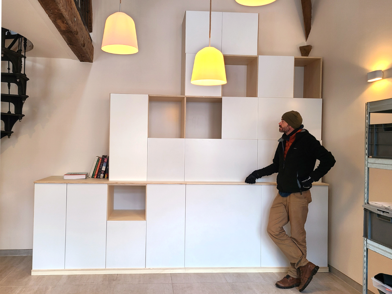 Leur modularité permet de varier les usages tout en conservant un aspect global épuré et mettant en valeur la forme en escalier qui caractérise ce meuble et l’intègre parfaitement dans l’espace.