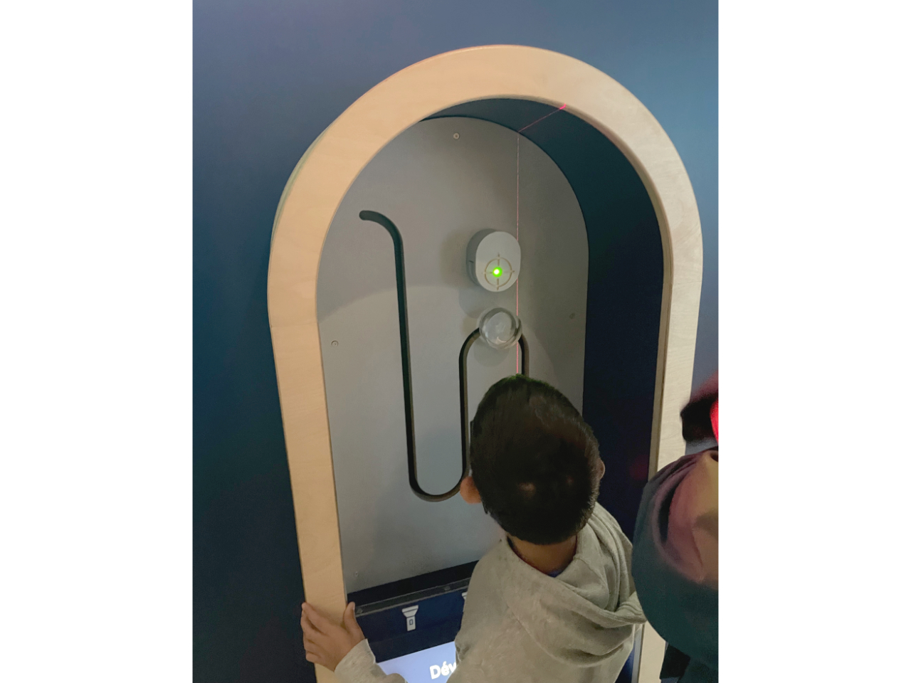 Les trois dispositifs proposent une expérience interactive où les visiteurs manipulent des prismes de Plexiglass transparent de formes variées afin d’interagir avec un rayon lumineux issu d’un laser. Les visiteurs doivent orienter le rayon lumineux vers une cible pour remporter la partie tout en appréhendant les notions de réflexion et réfraction lumineuse.