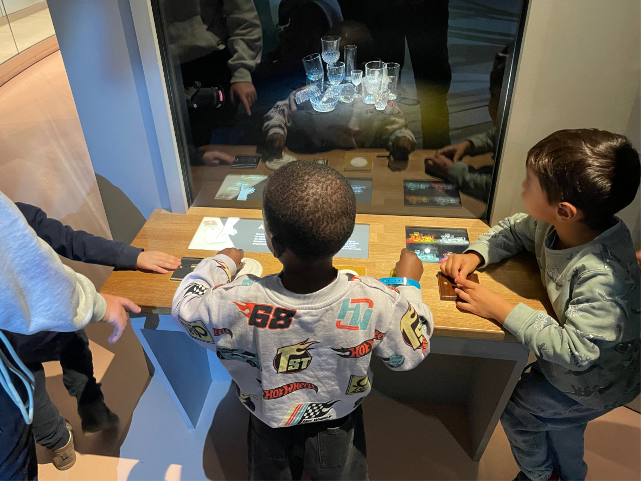 À partir d’une composition inspirée des natures mortes artistiques, les visiteurs peuvent créer leur propre tableau grâce au jeu de lumière et à la transparence d’un ensemble de verrerie qui prend place au centre d’une boîte noire. En s’inspirant de la mosaïque de photos ou en laissant libre cours à leur imaginaire, les enfants allument ou éteignent des spots dont les emplacements et couleurs variés permettent de créer des reflets différents.